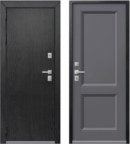 Снаружи – панель МДФ цвета распил графит в металлической окантовке. Внутренняя накладка на выбор в двух цветах - Кашемир графит и Кашемир белый.
