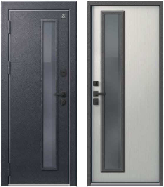 Внутренняя панель МДФ выполнена в двух цветах - ясень пепельный, ясень скандинавский. Стекло цвета серый с низкоэмиссионным энергосберегающим покрытием, сохраняет тепло внутри дома и практически исключает теплопотери. Дверь Т-10 отлично впишется в любой интерьер и защит Ваш дом от холода