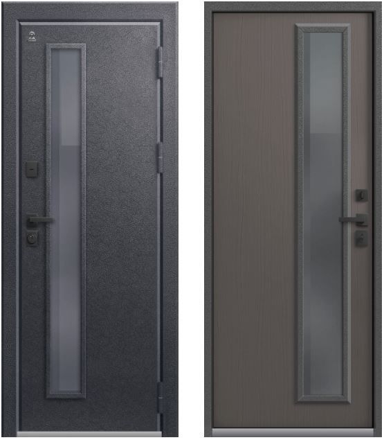 Внутренняя панель МДФ выполнена в двух цветах - ясень пепельный, ясень скандинавский. Стекло цвета серый с низкоэмиссионным энергосберегающим покрытием, сохраняет тепло внутри дома и практически исключает теплопотери. Дверь Т-10 отлично впишется в любой интерьер и защит Ваш дом от холода