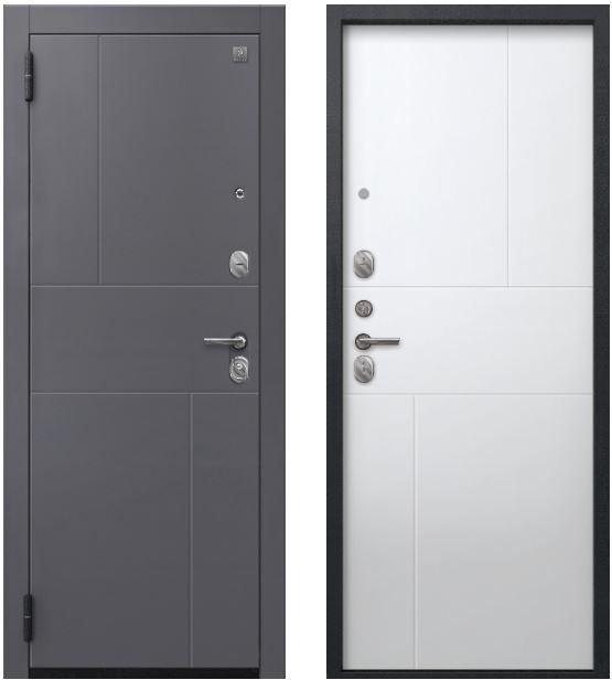 Два контура уплотнения с трехкамерным уплотнителем надежно защищают от сквозняков и посторонних запахов. Замки Sezam 103 и 102 в сочетании с эксцентриком (регулятором притвора), цилиндром (ключ-вертушка) и броненакладкой на цилиндр обеспечивают высокий уровень защиты от несанкционированного проникновения. Дополнительная ночная задвижка повышает безопасность, а раздельная ручка и глазок добавляют удобства в использовании. Противосъемные штыри и две петли обеспечивают дополнительную защиту от взлома.