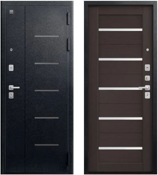 Внутренняя панель – МДФ, толщиной 10 мм, с имитацией царгового щита. Дверь В-05 идеально сочетается с межкомнатными дверями в царге «Вена», что сделает интерьер завершенным. На выбор 2 цвета – лиственница светлая и темная, в комбинации со вставками из светлого и черного стекла.