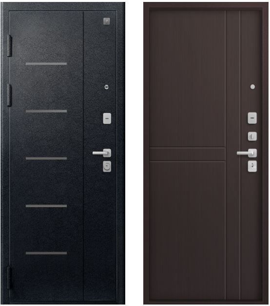 Три контура уплотнения защищают квартиру от постороннего шума и сквозняков. Сталь толщиной 1,4 мм обеспечивает достаточную прочность при умеренной массе готового изделия. Для обеспечения дополнительной жесткости конструкции используется технологический вертикальный гиб(штамп) с внешней стороны полотна. Наполнитель двери – пенополистирол, двойной слой которого обеспечивает тепло и шумоизоляцию двери.