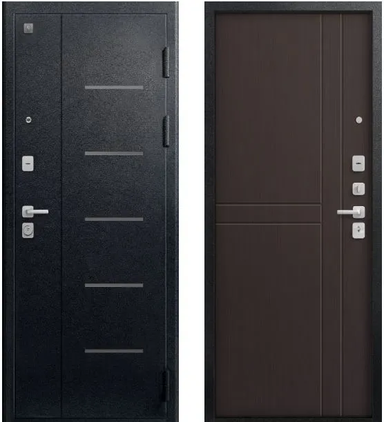 Три контура уплотнения защищают квартиру от постороннего шума и сквозняков. Сталь толщиной 1,4 мм обеспечивает достаточную прочность при умеренной массе готового изделия. Для обеспечения дополнительной жесткости конструкции используется технологический вертикальный гиб(штамп) с внешней стороны полотна. Наполнитель двери – пенополистирол, двойной слой которого обеспечивает тепло и шумоизоляцию двери.